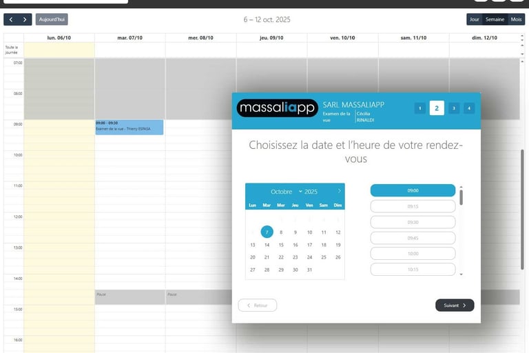 Ce gestionnaire de RDV avec CRM client et équipe, a été conçu pour être intégré en parallèle du chatbot IA, afin d'enregistrer les RDV pris par celui-ci.